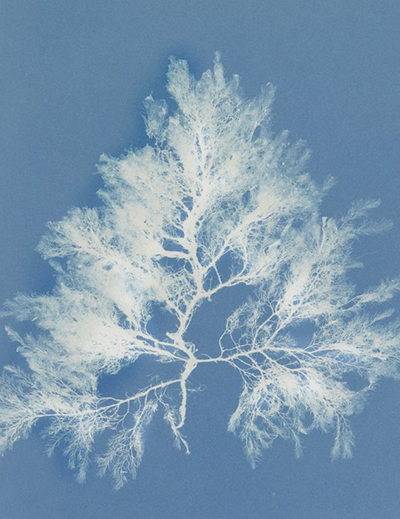 The English botanist and photographer Anna Atkins was a modern woman in every respect. For the publication of her plant collection she used the latest technique, the then newly discovered cyanotype of John Hershel. Although the artistic was not her goal, she arranged the plants in such an elegant way that she merged rational science with modern art. She is therefore seen as the first female photographer and the first person to publish a photo book.